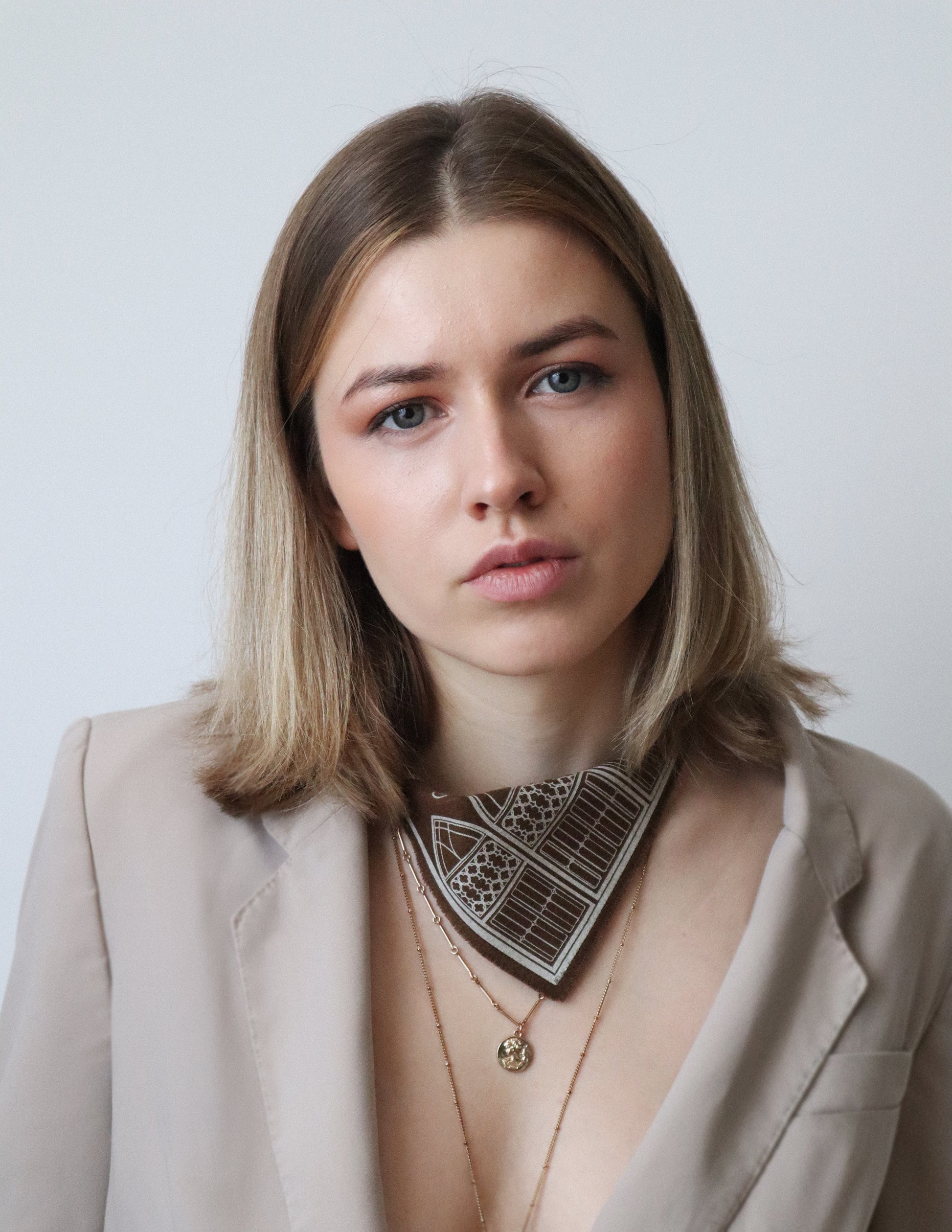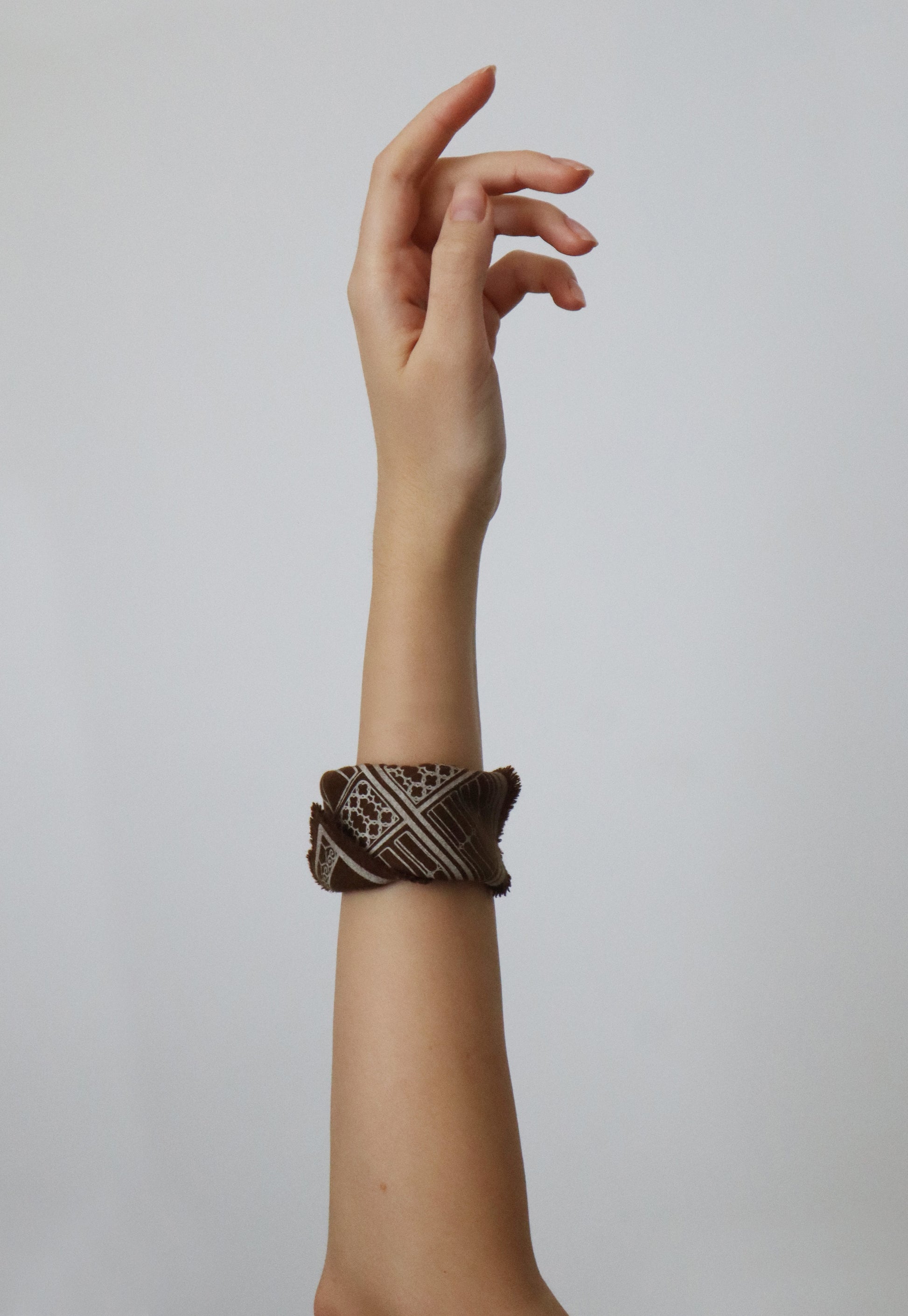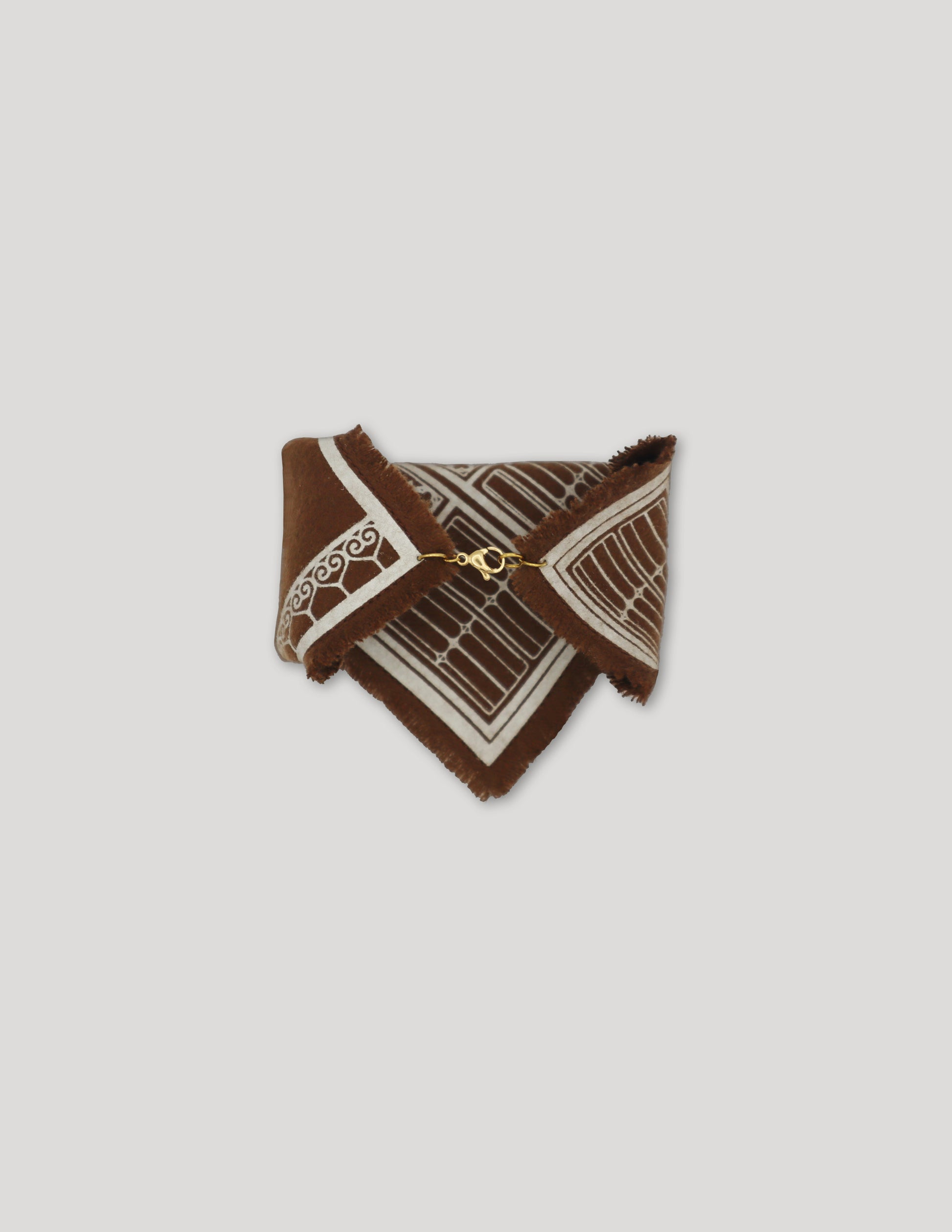 - Motifs imprimés au pochoir avec bords frangés à la main.